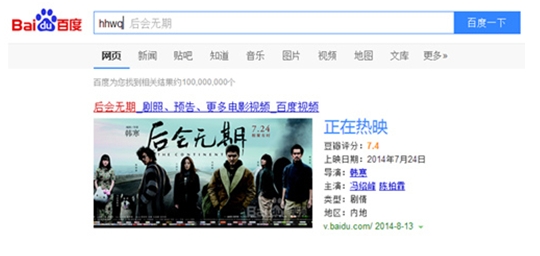 網(wǎng)友如想搜索"爸爸去哪兒",只需在搜索框中輸入"爸爸",百度便會預估個性化搜索需求,以灰色字體"猜"出網(wǎng)友想要的搜索結(jié)果,即時顯現(xiàn)內(nèi)容。即便網(wǎng)友的輸入很模糊,只有幾個字符"hhwq",智能預測也會快速轉(zhuǎn)化成關(guān)鍵詞"后會無期",進行頁面展現(xiàn),真正做到"先知"。