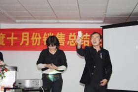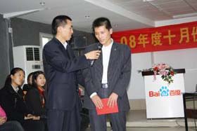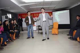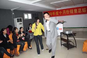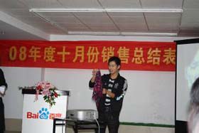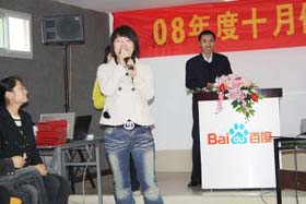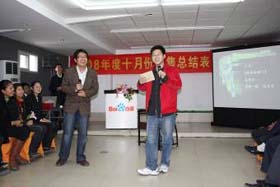 涼風(fēng)習(xí)習(xí),秋雨綿綿澆不滅我們涌動(dòng)的青春、火熱的激情。2008年11月8號(hào)下午,我司十月份銷(xiāo)售總結(jié)表彰大會(huì)順利拉開(kāi)了帷幕。百度渠道部經(jīng)理晟皞先生為此次會(huì)議作了一番別具風(fēng)格的致詞,與會(huì)人員無(wú)不熱情高漲。與其說(shuō)是會(huì)議不如說(shuō)是狂歡派對(duì),大家不由自主地敞開(kāi)心扉、釋放激情。